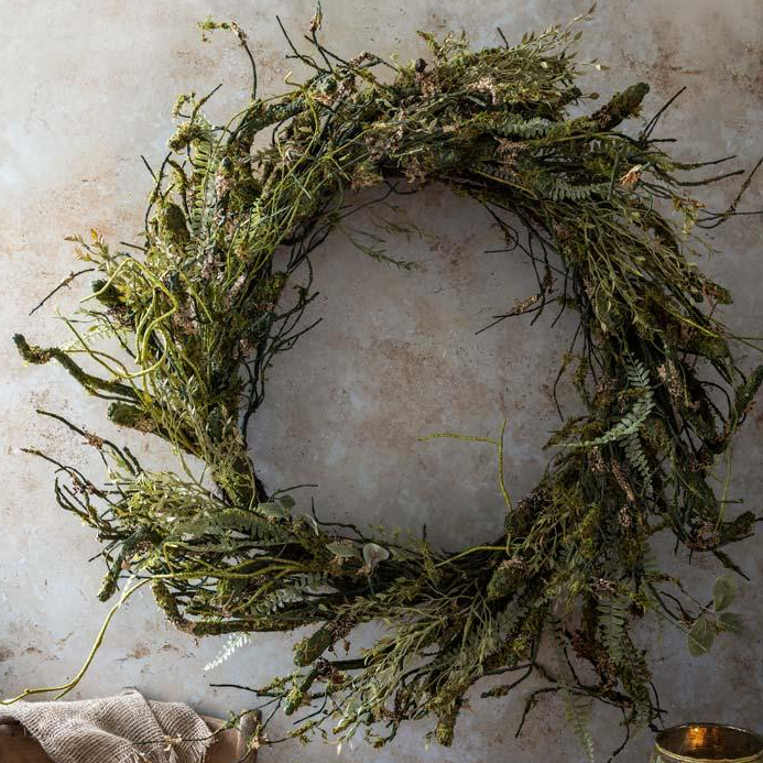 Bring the beauty of the wild indoors with our 40" Forest Wreath. Designed with a lush mix of woodland-inspired greenery, winding branches, and natural textures, this statement wreath captures the organic charm of a forest floor. Its oversized silhouette makes it perfect for hanging above a mantel, on a front door, or as a dramatic wall accent. With its earthy tones and layered botanicals, this wreath offers a timeless way to add depth and natural elegance to your home year-round.