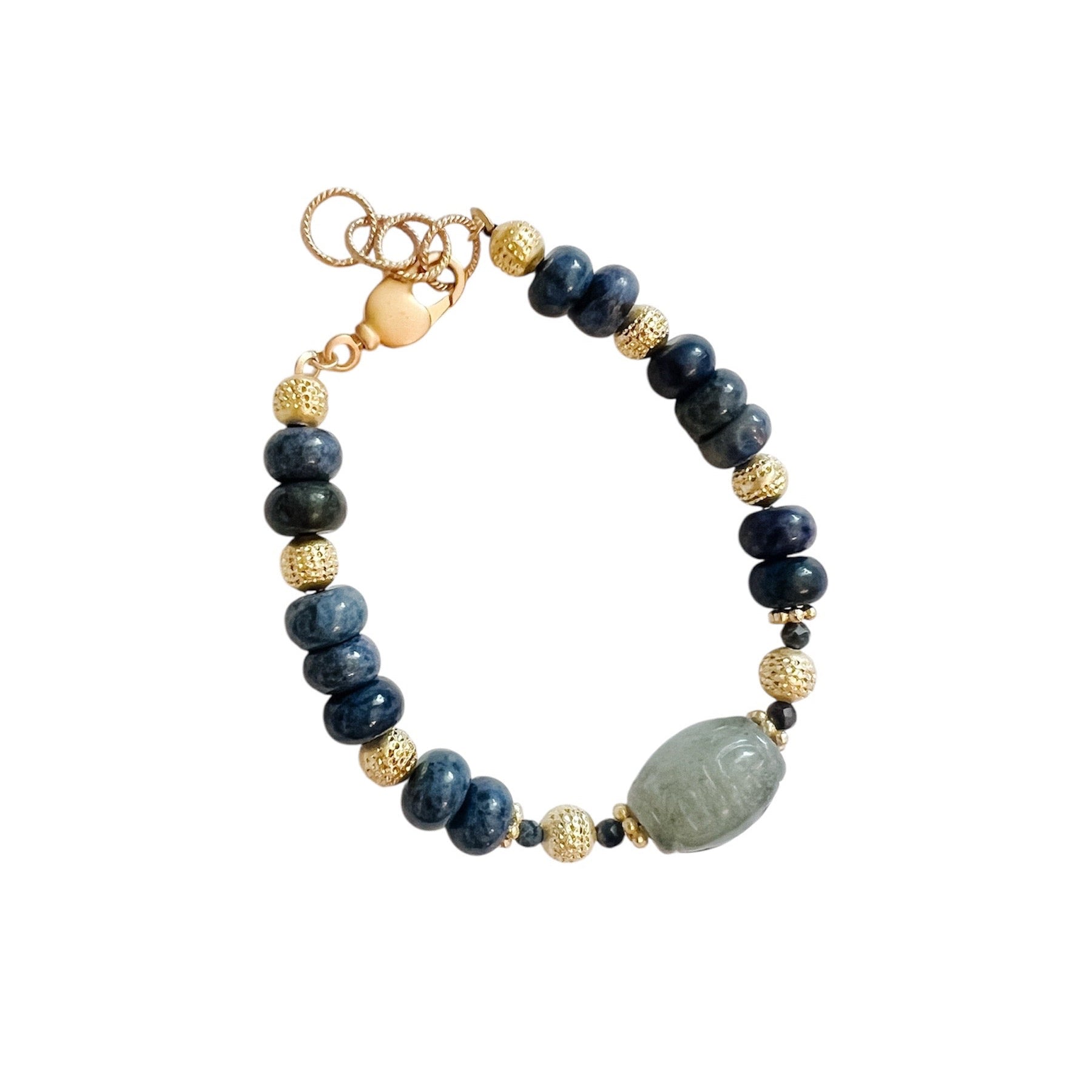 navy and gold beaded clasp bracelet