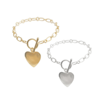 Classic meets modern with the Norma Bracelet. Available in gold or silver, this elegant chain-link bracelet features a heart charm and a timeless toggle clasp for effortless wear. Perfect for layering or wearing solo, it adds a touch of romance and shine to any look—making it a beautiful everyday piece or a thoughtful gift.