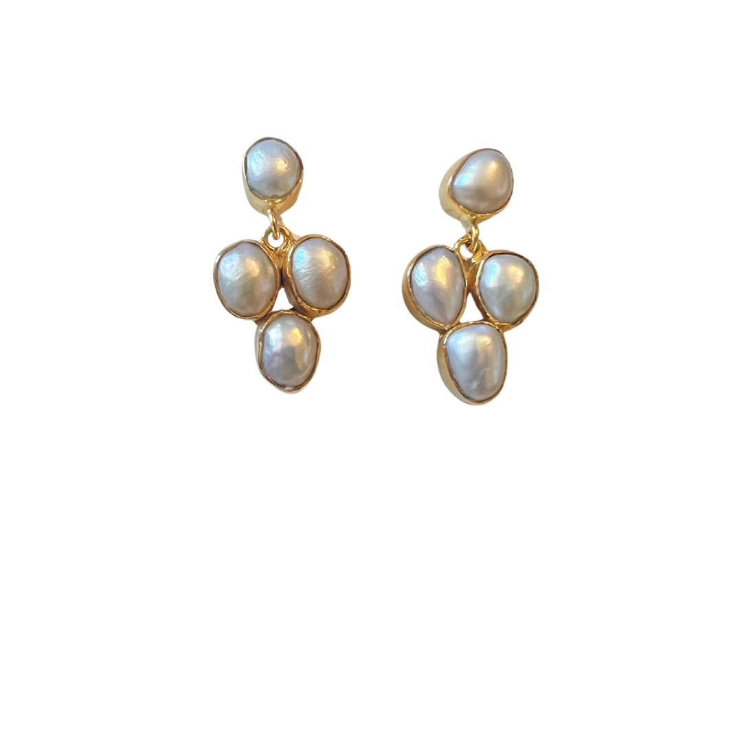 The Sinclair Earrings are designed to make a statement with their elegant grey pearl cluster design and refined gold detailing. Bold yet sophisticated, these earrings add a touch of glamour to any outfit—perfect for special occasions or elevating your everyday look.