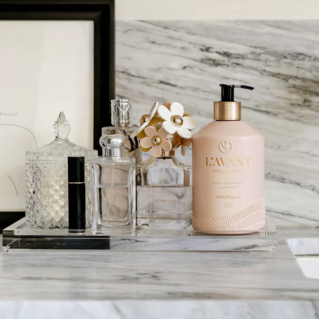 Experience the ultimate cleaning experience with L'AVANT's Hand Soap. This gentle hand wash transforms into a rich lather, leaving hands feeling clean, soft and scented with our signature, Fresh Linen fragrance. The beautiful, durable, refillable glass bottle has a brushed gold neck with pump adding an elegant touch to any countertop and can be easily refilled with our convenient refill option.
