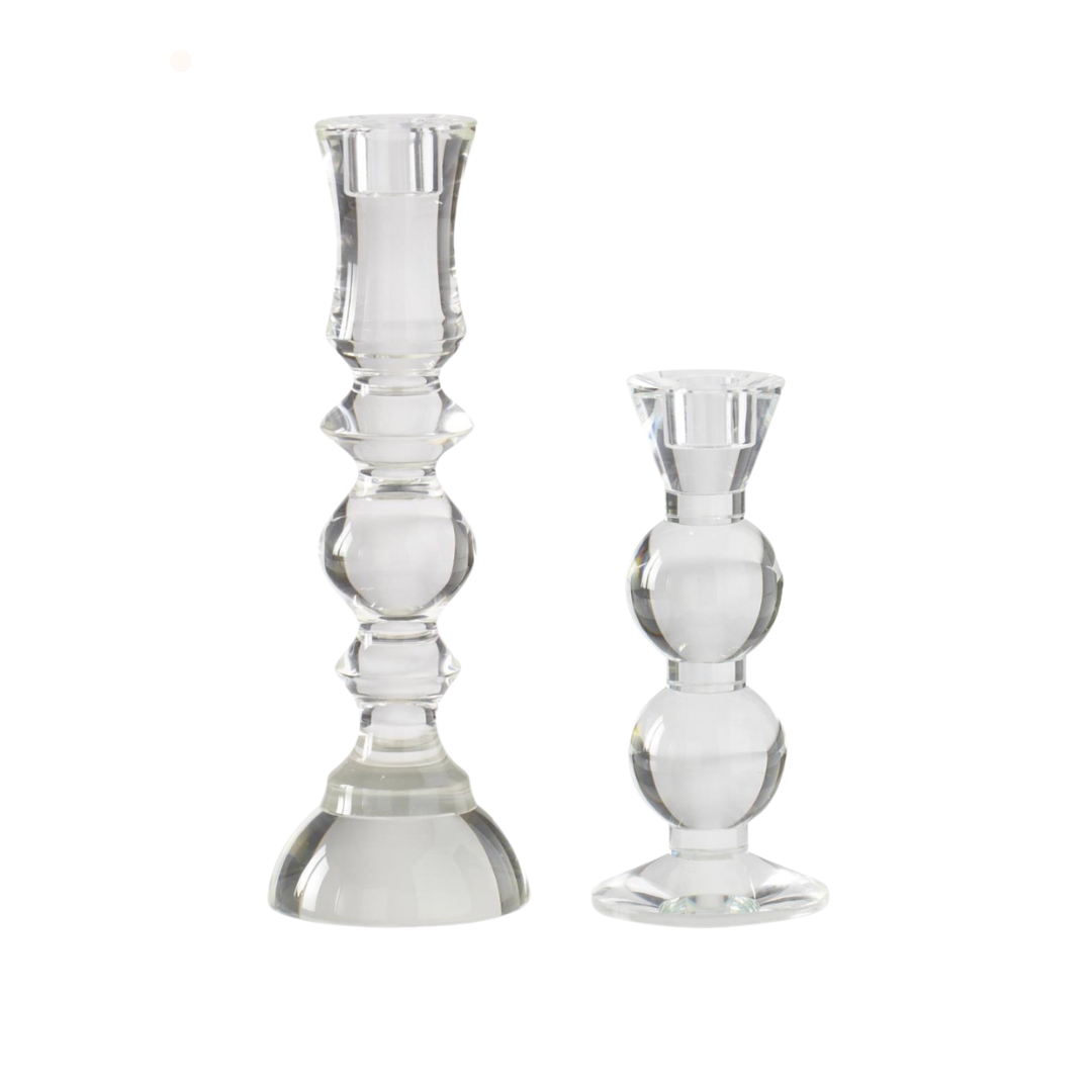 Elevate your ambiance with the timeless elegance of the Lochlan Crystal Taper Holders. Available in two distinct sizes, each holder is expertly crafted from clear crystal to reflect light beautifully and add a refined touch to any setting. The taller holder features an elongated, faceted silhouette for a dramatic statement, while the shorter version offers a more compact, modern shape—perfect for mixing and matching. Ideal for formal dining, special occasions, or everyday sophistication.