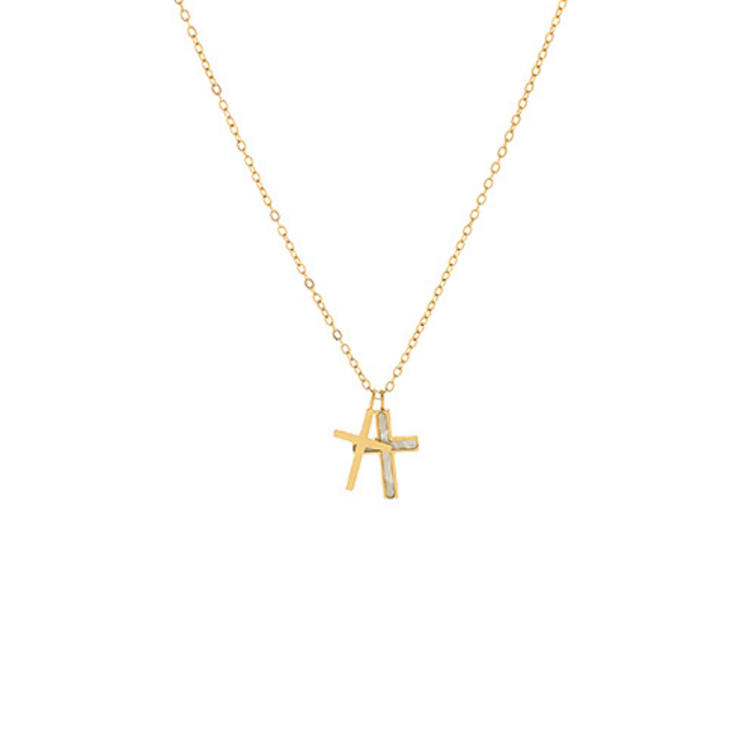 A symbol of faith and quiet strength, the Lita Dual Cross Necklace features two distinct cross pendants suspended from a delicate gold chain. With a modern mixed-metal look and minimalist silhouette, this piece effortlessly balances simplicity and meaning. Wear it alone as a daily reminder or layer it with your favorites for a bolder, personal expression. Timeless and meaningful, it makes a beautiful gift or an everyday staple.