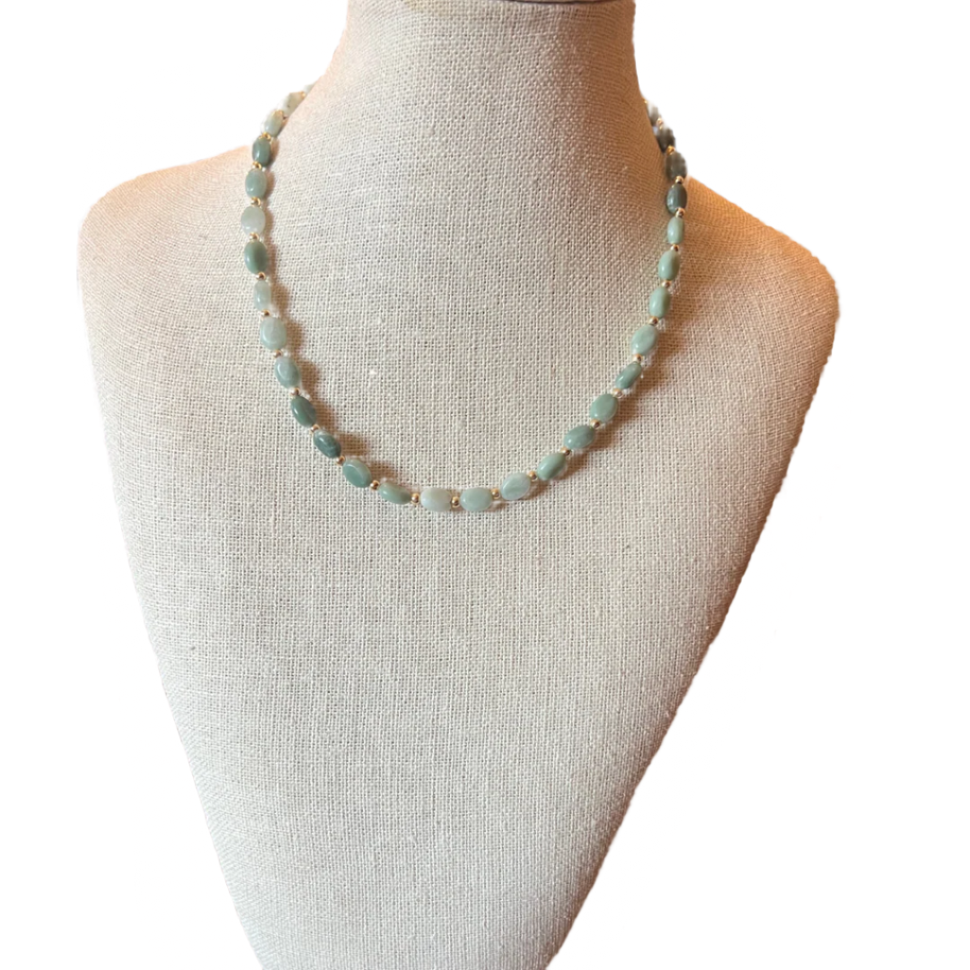 The Merritt Necklace features vibrant green beads paired with elegant gold detailing, creating a look that’s both stunning and unique. Whether worn alone or layered, it’s the perfect piece to add a playful pop of color to your everyday style. A bold yet versatile accessory that stands out effortlessly.