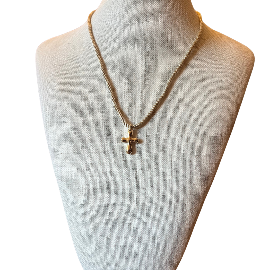The Wynn Necklace features a taupe-colored rope chain paired with a gold cross charm, blending playful style with timeless elegance. Fun and stunning on its own, it’s also perfect for layering—making it a versatile addition to any jewelry collection.