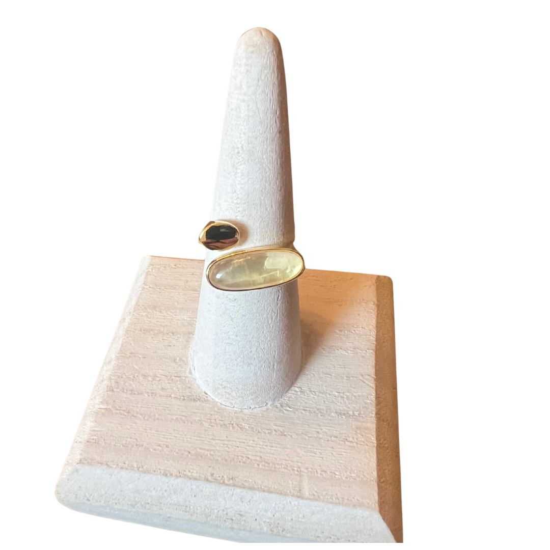 Elegant and eye-catching, the Florence Ring features a topaz-colored oval stone set in a gleaming gold band. With its adjustable design, it offers a comfortable fit for any finger. Bold yet refined, this statement ring adds a touch of sparkle and sophistication to both everyday looks and special occasions.