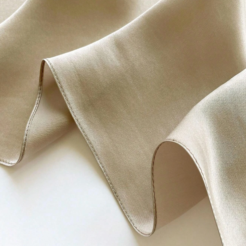 Elevate your accessory game with the Hudson Scarf. This luxurious square scarf in a soft champagne hue is the perfect blend of elegance and versatility. Its generous size makes it ideal for wearing around your neck for a polished look or tying in your hair for a chic, effortless style. Whether you're dressing up for a special occasion or adding a subtle touch of sophistication to your everyday ensemble, the Hudson Scarf is the perfect finishing touch to any outfit.
